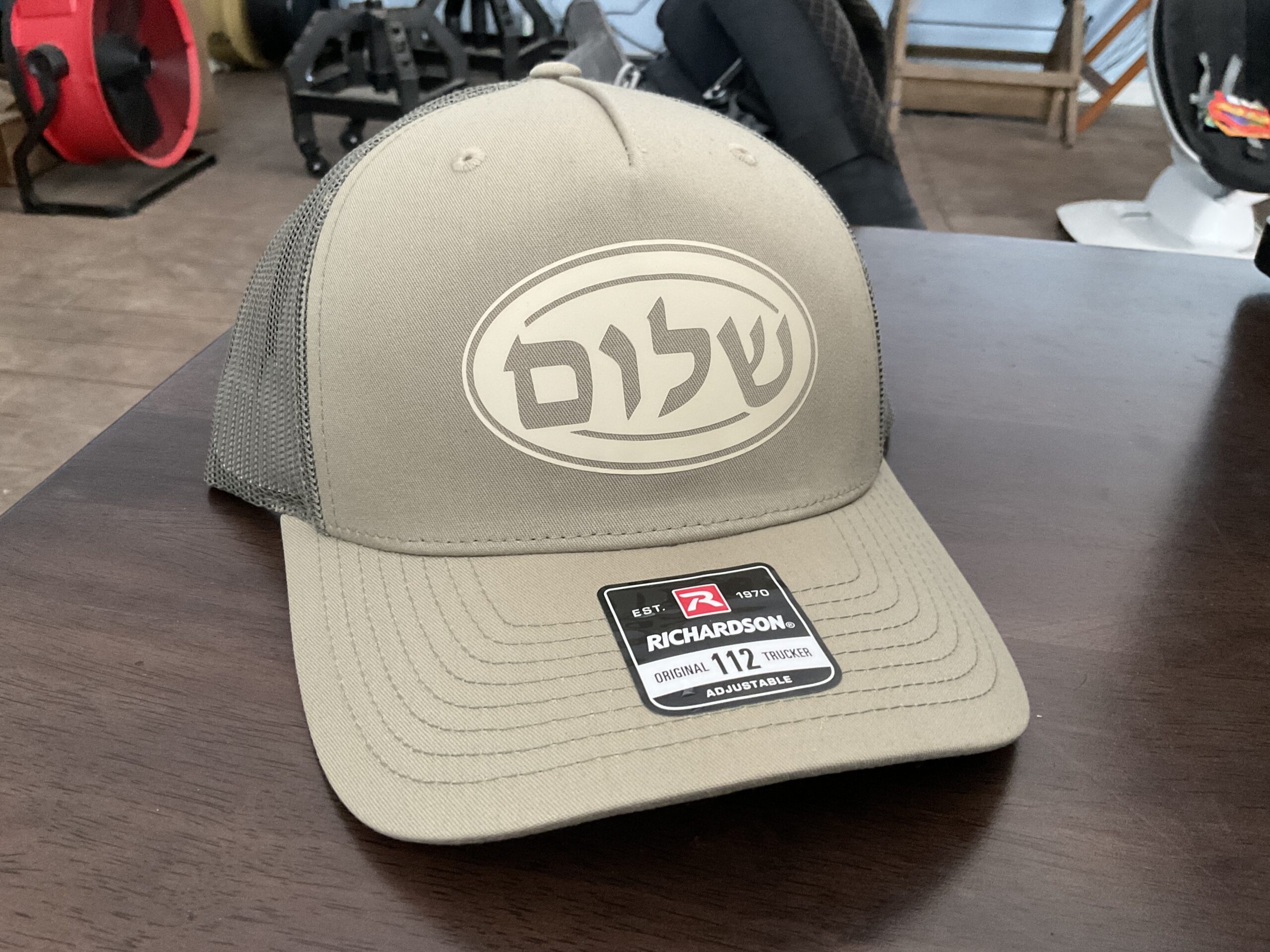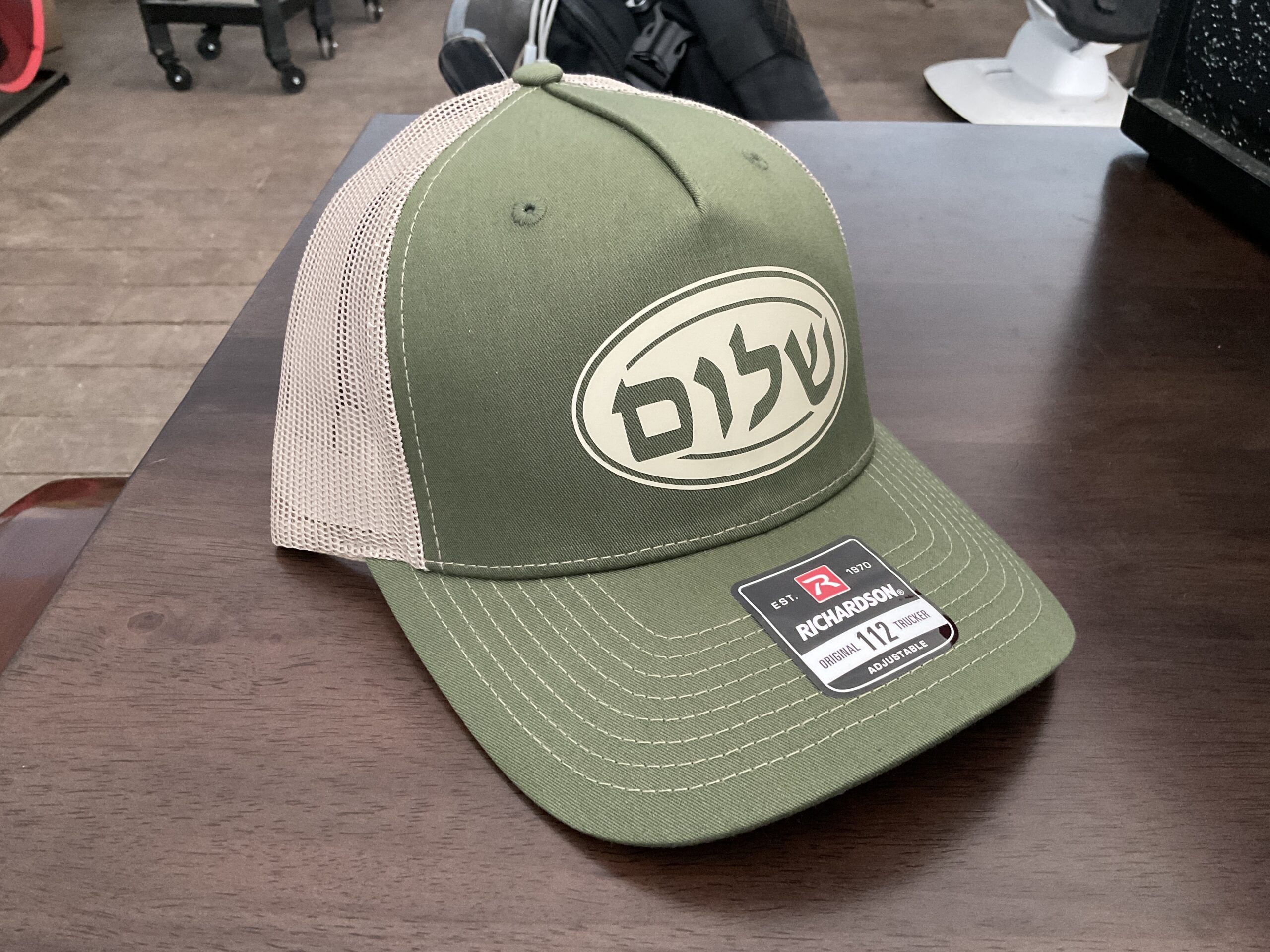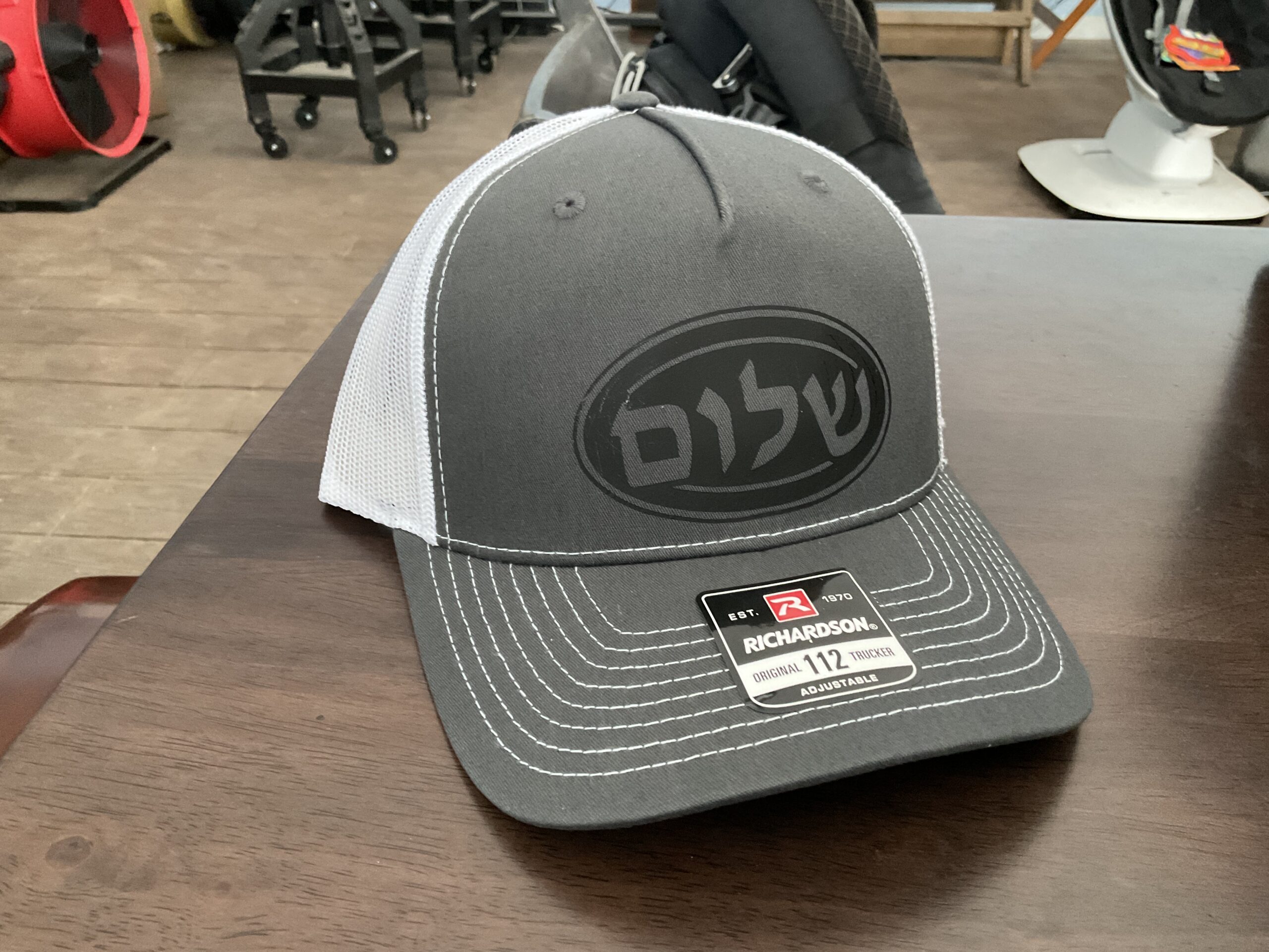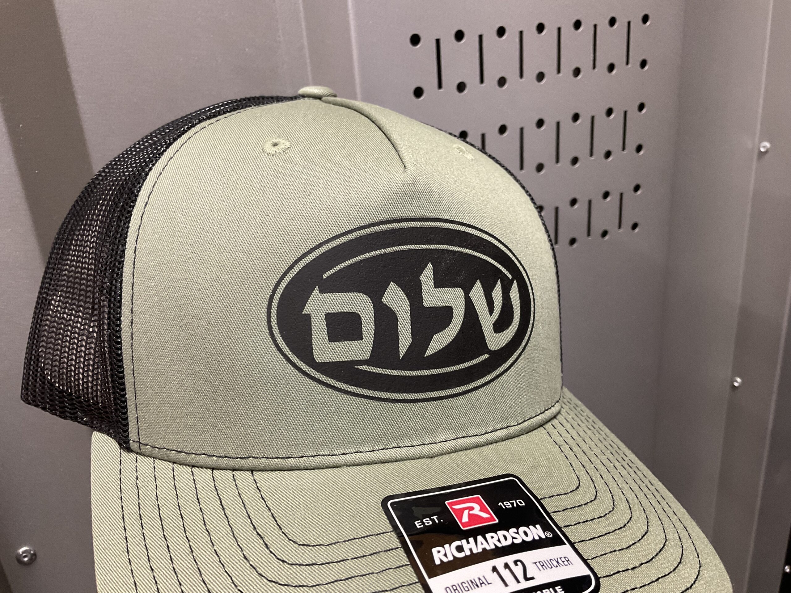 This design features the word ‘Shalom’, or ‘Peace’, written in Hebrew. With this snapback cap, peace will always be upon your head. This design is printed on a Richardson Trucker Cap.